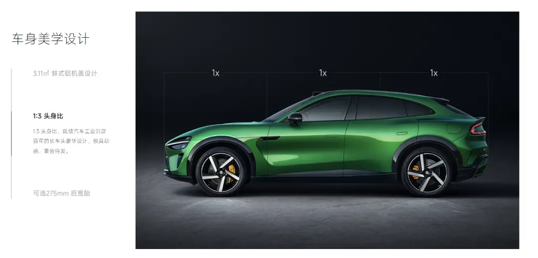 同时,长车头会让车身显得修长,使驾驶舱靠近视觉中心,视觉比例更协调美观。