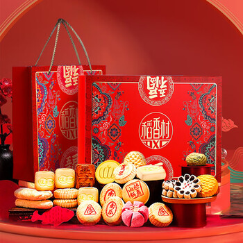 白菜!中华老字号,稻香村 五福临门 中式糕点礼盒2000g(40饼18味) 新低29元包邮