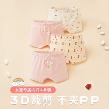 卡拉美拉 女童新疆长绒纯棉平角内裤 4条装(110-160码)新低19.9元包邮
