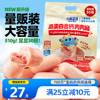 小鹿蓝蓝 高蛋白含钙肉肉肠510g(17g*30根)*2件45.04元包邮(折22.52元/袋)