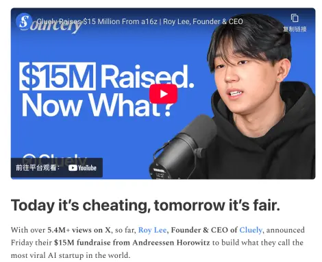 这不禁让人想到韩裔小哥Roy Lee,他构建AI辅助的面试作弊器,成功拿到包括Meta在内的多个大厂的实习机会,之后又手撕offer,高调宣布创业。如今,他的公司Cluely已经拿到了2000万美元的总融资额。