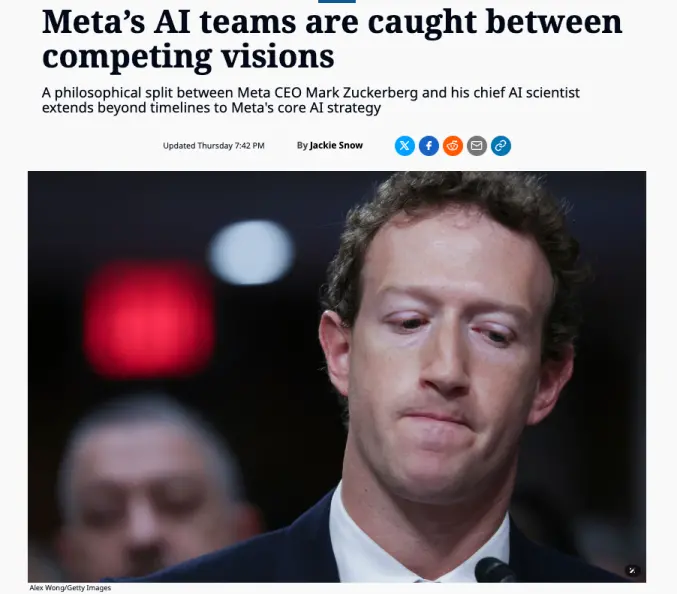 新的超级人工智能团队,涵盖了其他团队,包括建立已经12年的FAIR,内部竞争张力拉满;