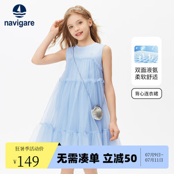Navigare 意大利小帆船 2025夏季新款女童无袖纯棉公主裙 三色89元包邮