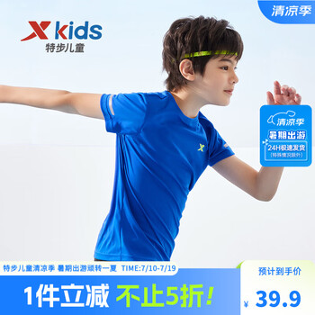 6S迅速扩散,3S瞬时吸汗,5倍超快干爽!目前京东商城特步童装旗舰店售价¥39.9,领取满119减35优惠券及满99减15优惠券,任选3件,实付低至69.7元,单件只需23.2元!男、女童多款可选,100~170码全。