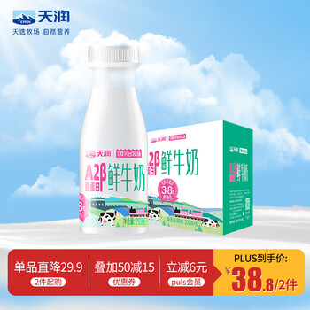 这款是A2β-酪蛋白亲和人体更好吸收,巴氏杀菌冷藏口感更好!目前天润(TERUN)低温乳品京东自营旗舰店6瓶售价29.9元,领满50-15元优惠券,plus立减6元,下单2件,到手38.8元,plus会员包邮,折19.4元/件,3.23元/瓶。!