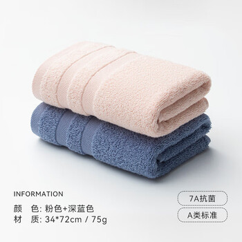 三利 7A抗菌纯棉长绒棉毛巾 34*72cm*75g*2条 14.9元包邮(7.45元/条)