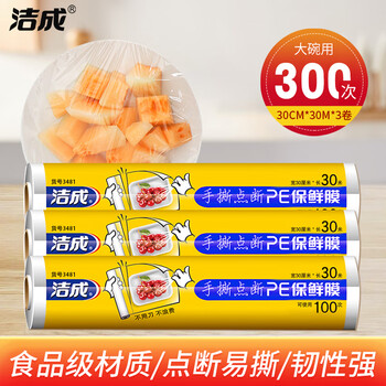 超市一卷差不多就要这个价了!食品级保鲜膜,点断撕取,可以进微波炉加热!目前京东商城洁成厨具官方旗舰店3卷售价12.9元,领取满12减5优惠券,实付7.9元包邮,折2.63元/件白菜价!