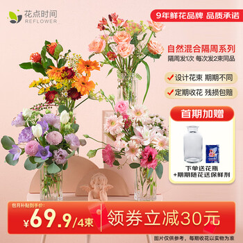 花点时间 混合鲜花花束 包月共4束/1周发2束69.9元包邮(送花瓶)