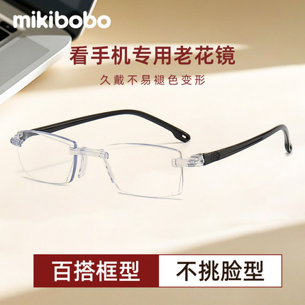 mikibobo无边框老花镜C4026高清透光老人镜时尚经典款老花镜 看字也清晰。采用人体工学设计,看字清晰,轻盈佩戴,稳固耐用