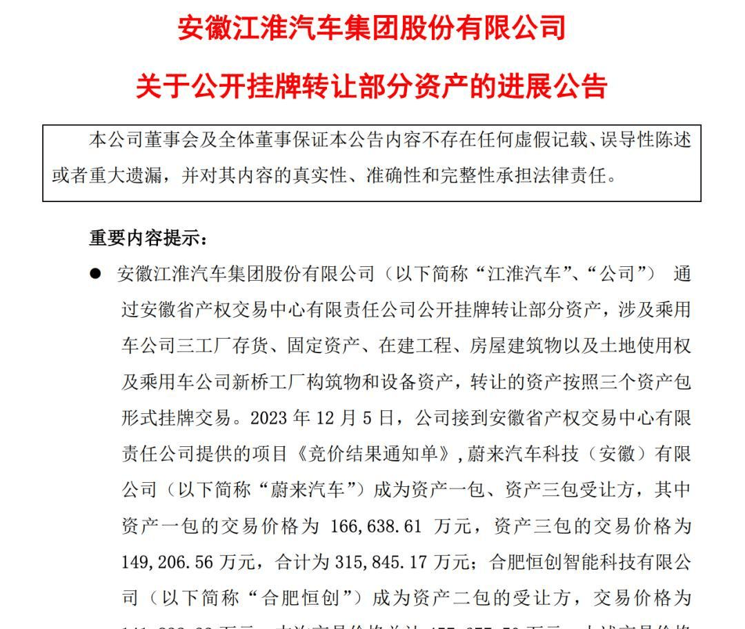 早在 2023 年,蔚来就取得了独立的造车资质,跟江淮之间的整车制造合作转入新阶段。江淮也把工厂挂牌,明码标价陆续卖给了蔚来。(大概值 3 年的代工费)