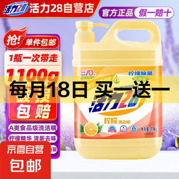 活力28 洗洁精 1.1kg 5元(买一送一,实付10.01元)