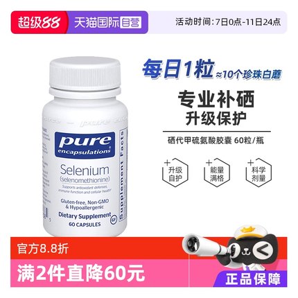 雀巢旗下高端营养补充剂,Pure 倍宜 补硒胶囊 200mg*60粒新低109.31元包邮包税
