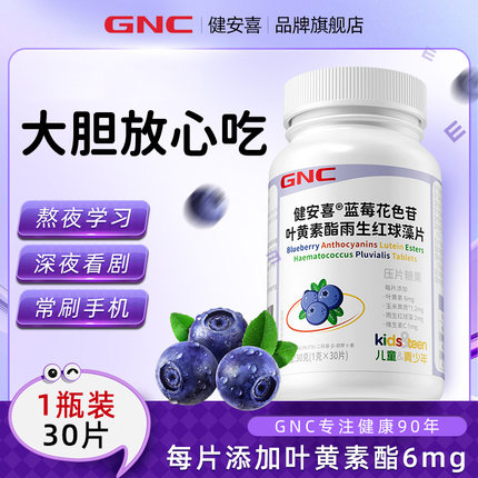 GNC 健安喜 儿童&青少年蓝莓花色苷叶黄素酯雨生红球藻片 券后14.9元包邮
