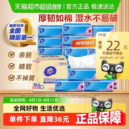 维达 棉韧抽纸3层S码110抽*20包家用纸巾卫生纸箱装 券后20.65元
