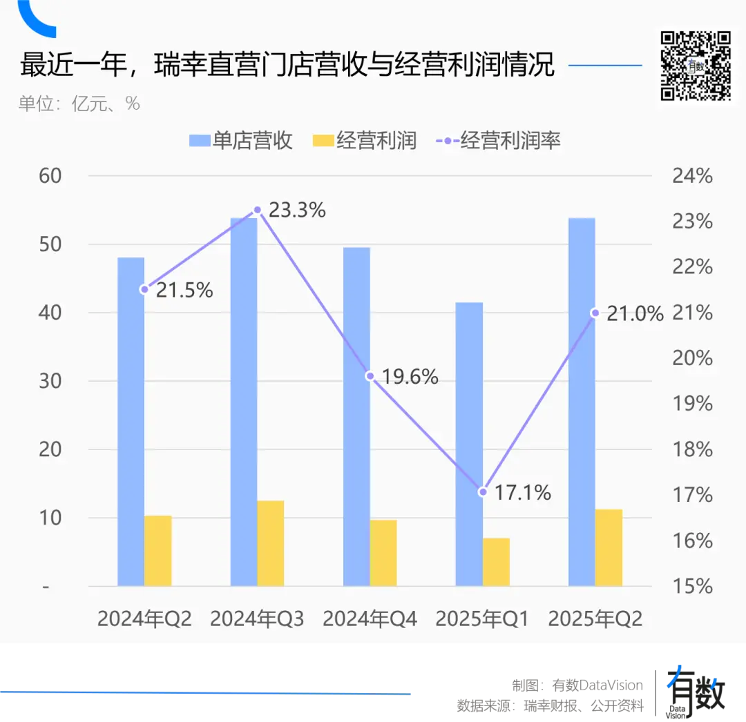 二季度,瑞幸直营门店单店收入为53.8万元,同比提高12%,但经营利润率不升反降,降幅为2.4%,原因大概率是瑞幸客单价有小幅降低。