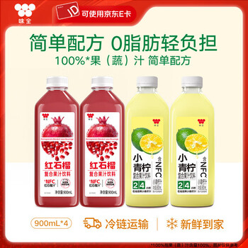 味全 每日C 100%果汁 小青柠900ml*2+石榴汁900ml*2瓶 34.4元包邮(8.6元/瓶)