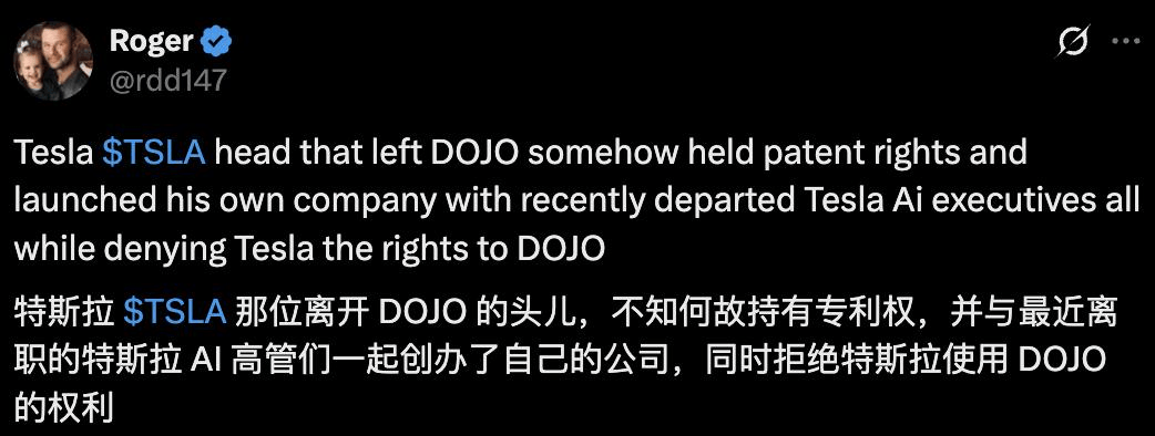 甚至有消息说,连 Dojo 的专利都不在特斯拉自己手上,以后想再继续干也没有机会了。