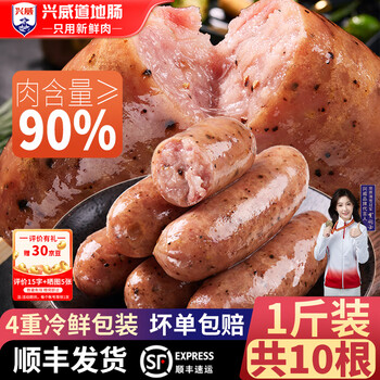 90%含肉量,兴威 黑胡椒烤肠10根/500g*5件 多口味可选64.5元包邮(12.9元/件)