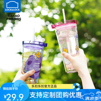 乐扣乐扣 吸管带盖双层高硼硅耐热玻璃杯子 620ml*2件29.9元包邮(14.95元/个)