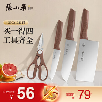 切片刀 小厨刀 水果刀 剪刀 实用四件套。商品面价72元,满49减10(下单自动领取),满1件减23元(百亿补贴),PLUS会员95折(领取链接),43.2元