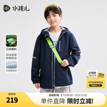 杜邦特氟龙三防面料,防泼水,防泼油,摇粒绒内里,舒适保暖。目前目前京东商城水孩儿童装旗舰店售价¥ 499,领取¥350优惠券,叠加¥119-20补贴券,实付¥129包邮好价,4色码全。