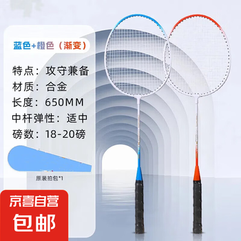 德尔惠羽毛球拍套装,轻盈耐用,助你在球场上挥洒自如!白蓝与白橘双色搭配,时尚又百搭。附赠3球和拍包,出行更方便。