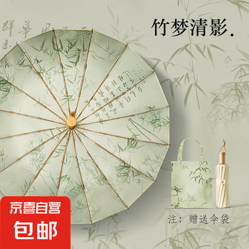 这款16骨雨伞不仅防晒遮阳,还能抵御大风,国风设计让你在雨中也能美美哒!竹梦清影和碧筠影两种颜色任你选择,时尚又实用。
