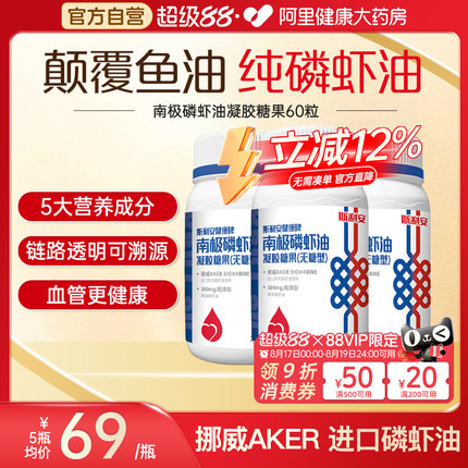 斯利安 斯利安健康牌 南极磷虾油凝胶糖果(无糖型)60粒65.8元包邮
