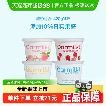 山姆同款,Oarmilk 吾岛 低糖/蜜桃/草莓低温酸奶 420g*4件 赠80g*3杯52元包邮(折13元/桶)