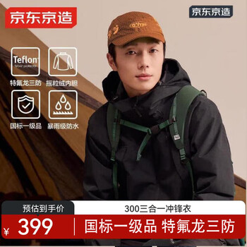 特氟龙三防冲锋衣外壳,20000mm/H2O防水指数,可拆卸抗静电抓绒内胆2.0,一衣三穿。目前京东商城自营售价¥499,下单立减¥100,领取¥100元优惠券,实付¥299包邮,新低好价,以往低价399元以上。