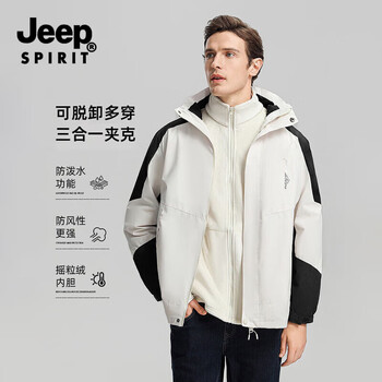 JEEP SPIRIT吉普三合一冲锋衣男士夹克户外保暖外套加绒加厚衣服 2色可选 99元