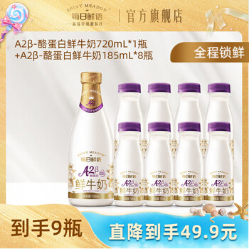 每日鲜语 优护 A2β-酪蛋白鲜牛奶 185mL*8瓶+720ml新低29.8元包邮