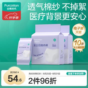 Purcotton 全棉时代 女士灭菌纯棉一次性内裤10条装 新低20.25元包邮(折2元/条)