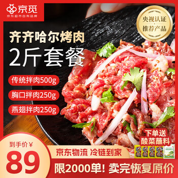 京觅 0添加正宗齐齐哈尔烤肉 净重2斤 送酸菜250g+蘸料新低89元包邮