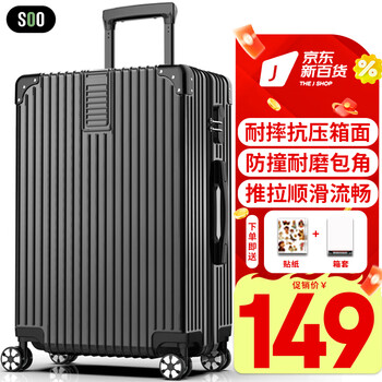 plus:SOO行李箱男万向轮拉杆箱耐磨抗摔26英寸A330旅行箱密码箱女商务黑色 141.55元