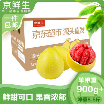 京鲜生 红心蜜柚4粒装 单果900g+ 净重8.5斤29.9元包邮