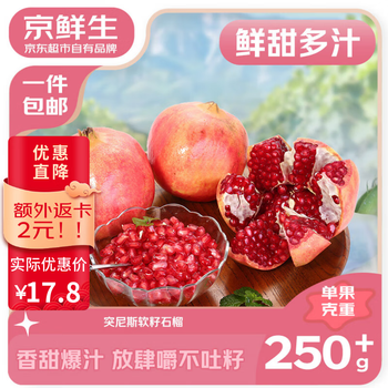 京鲜生 四川会理突尼斯软籽石榴 4.5斤单果250-300g 19.8元包邮