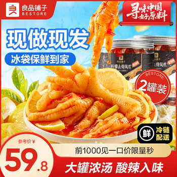 500g大罐装,好吃更过瘾!精选大个头凤爪,嫩皮多肉有嚼劲,手工剔骨,柠檬调味,酸辣爽口,滴滴卤汁十足入味,富含胶原蛋白,爽嫩弹牙,免啃方便。目前500g*2罐京东商城良品铺子旗舰店售价¥119.9,下单立减¥40,叠加¥99-20优惠券及¥77-25优惠券,实付¥34.9包邮,到手足足2斤哦,大牌更靠谱。