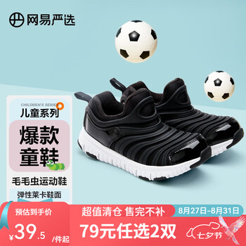 网易严选毛毛虫童鞋,经典黑色百搭又时尚,缓震防滑设计,保护宝宝每一步。商品面价49元,满78件打9折,购买2件,79元包邮
