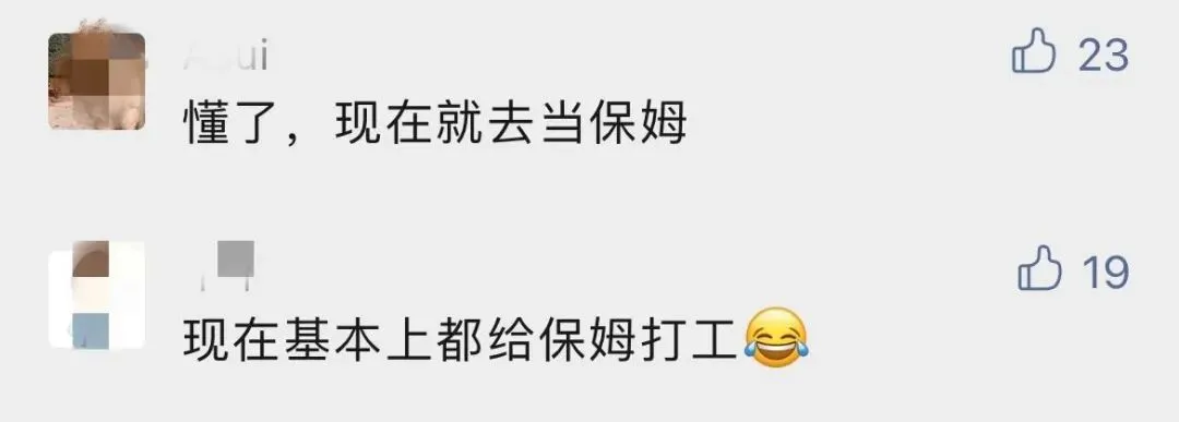 住家保姆这么香,不少网友调侃,也要去当保姆