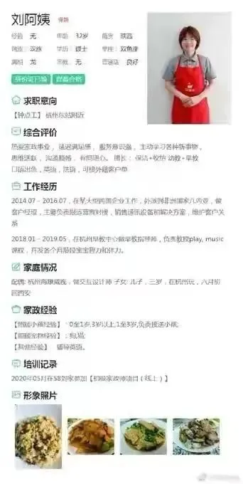 之前,网上就出现一份“最牛保姆简历”,30多岁的当事人拥有硕士学历,还会英语和法语