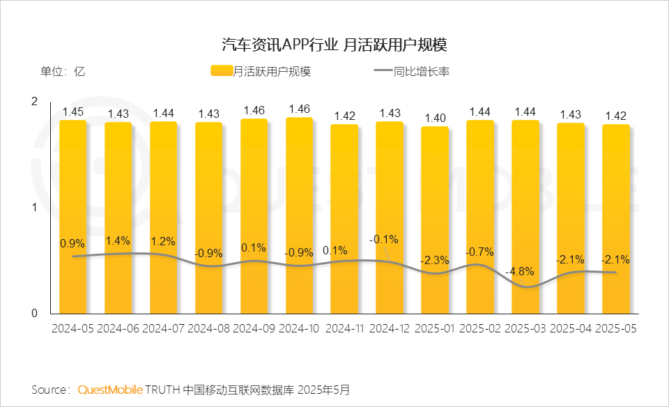 根据 QuestMobile 发布的《2025全景生态流量半年报告》,汽车资讯 APP 的用户规模正在不断萎缩。