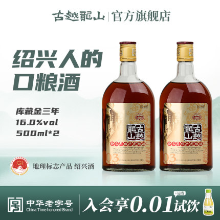 古越龙山 金三年 16度半干型绍兴花雕酒500mL*2瓶 新低18.9元包邮(9.45元/瓶)
