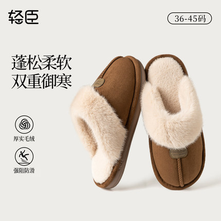 朴西旗下 轻臣 情侣款半包跟厚底翻毛皮加绒棉拖鞋 9503 多色 券后25.9元包邮