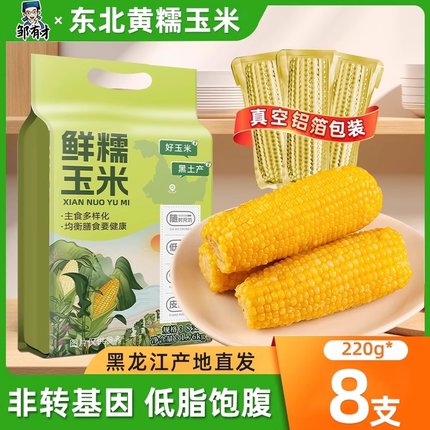 邹有才 非转基因真空铝箔装东北黄糯玉米棒 1.76kg 220g*8支 新低好15.71元包邮