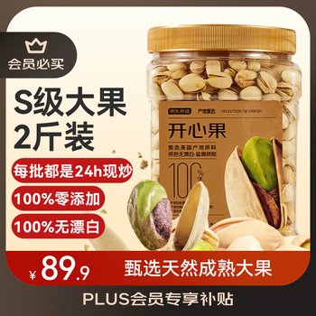 精选当季新鲜的美国核心产区开心果,原色不漂白,不添加色素、香精、防腐剂等,目前京东商城自营百亿补贴价¥89.9,Plus会员立减¥10.34,实付¥79.56包邮,折合¥39.78/斤好价!