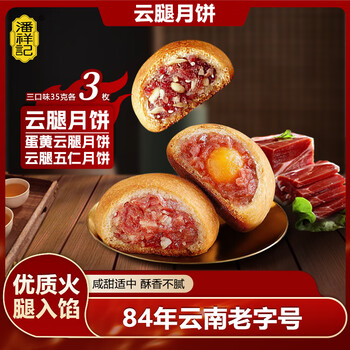 云南老字号,潘祥记 云腿月饼礼盒 3味9枚 315g新低22.87元包邮