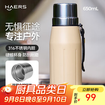 哈尔斯 征途系列 HGY-650-001-E 户外大容量316L不锈钢保温杯 650ml新低45.9元包邮