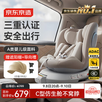 京东京造 儿童安全座椅0-4-12岁 I-size认证 安全舱 奶咖白 模拟ADAC测试 678元