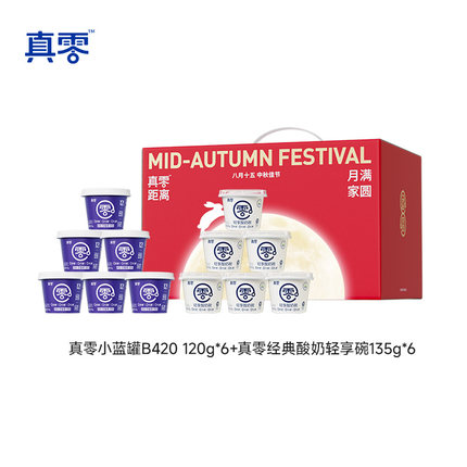 0糖、当然也没有乳糖!添加12种有益菌+额外添加b420菌,真正0糖,牛奶不耐受人群也能放心食用!真零距离,月满家园,真零重磅推出中秋礼盒,赠亲友,赠爱人,赠自己,明星产品组合,送礼超有面!目前商家 售价¥56.7,官方立减12%,下单自动领¥3美食红包,可领¥5优惠券,实付新低¥40.2包邮到手,B420益生菌小蓝罐120g*6+经典135g*6组合此价!顺丰冰袋发货,礼盒送人也OK。